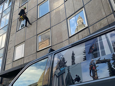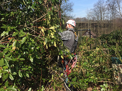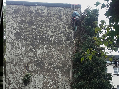 • Baumabtragung per Seilzugangstechnik - Rückschnitt von Bäumen und Gehölz - Todholzausschnitt - Wildwuchsentfernung - Pflege von Fassadenbegrünung