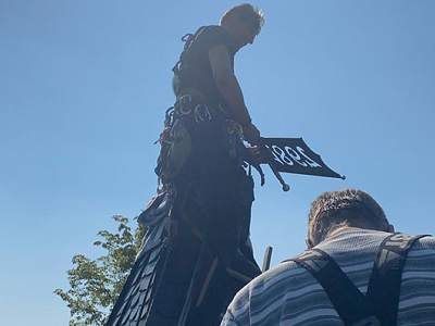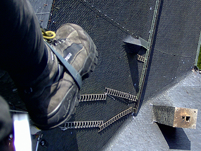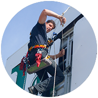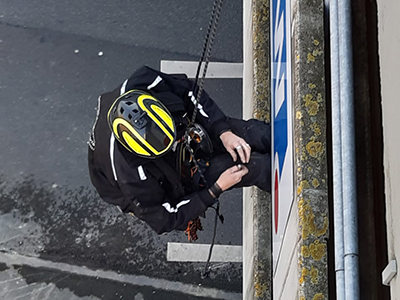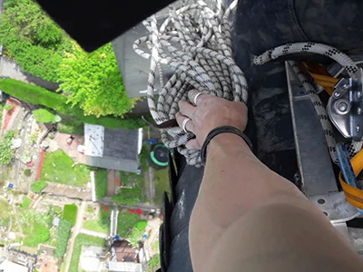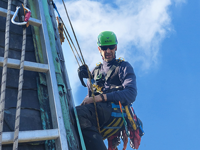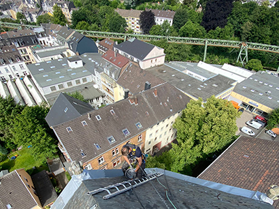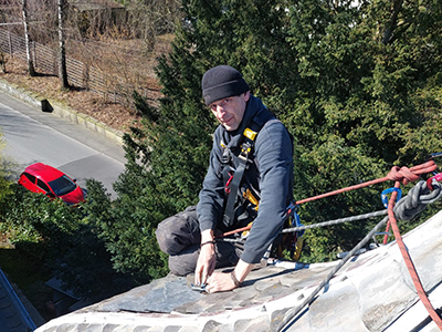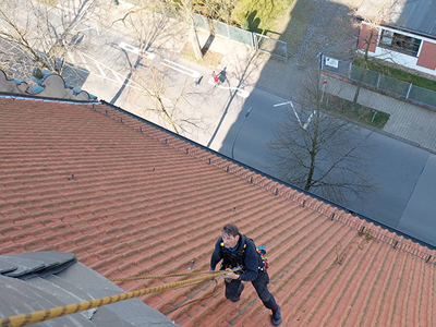 ... und das meinen wir auch so. Sie finden uns in luftigen Höhen dank professioneller Seilzugangstechnik. Aber wir sind nicht nur ausgebildetete Kletterer - wir dürfen als Dachdeckermeisterbetrieb auch die erforderlichen Wartungen und Reparaturen ausführen, alles aus einer Hand. Gern arbeiten wir auch mit Ihren Handwerkern zusammen.