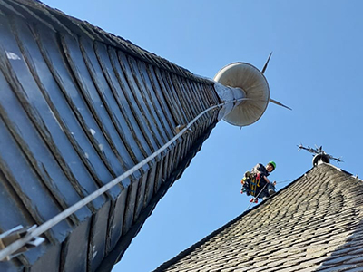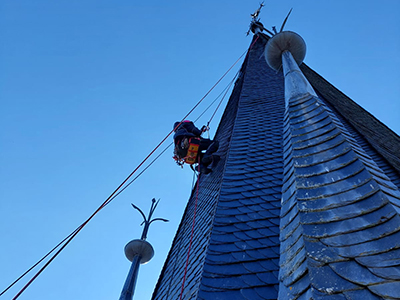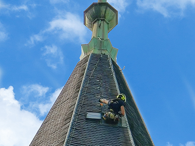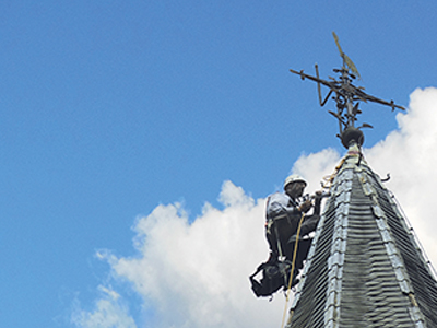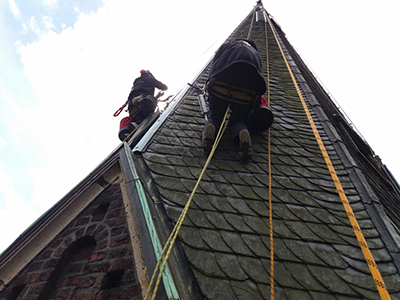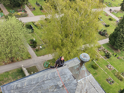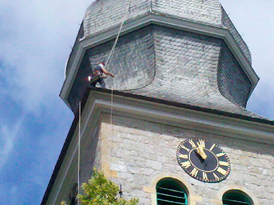 • an Kirchen, Brücken, Mauern und Kaminen - Dach- und Fassadenarbeiten - Bauzustandsprüfung & Schadendokumentation - Außenblitzschutzanlagen - Sturmschaden- & Gefahrbeseitigung
