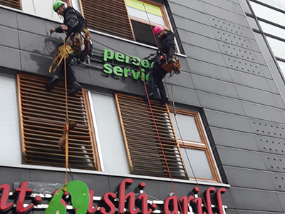 • Großformat-Poster und Werbeträger - Firmenlogos, Schriftzüge und Leuchtreklamen - Solar-, Antennen- und Blitzschutzanlagen - Installation von Sonderkonstruktionen - Rankhilfen für Fassadenbegrünung